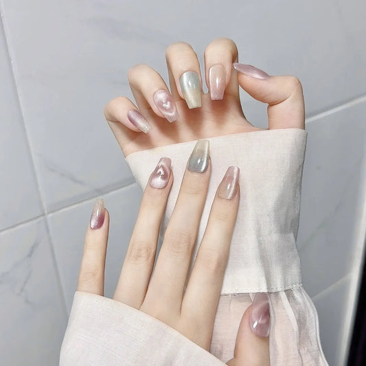 Nuevo estilo de uñas de ojo de gato con cristales rotos, que irradian un aura fría y sofisticada, hechas a mano para usar.