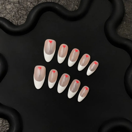 Uñas postizas acrílicas francesas color nude de alta calidad, uñas cortas almendradas a presión.