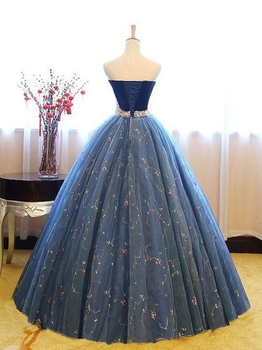 Vestidos de fiesta de tul con apliques y escote corazón sin mangas y largo hasta el suelo