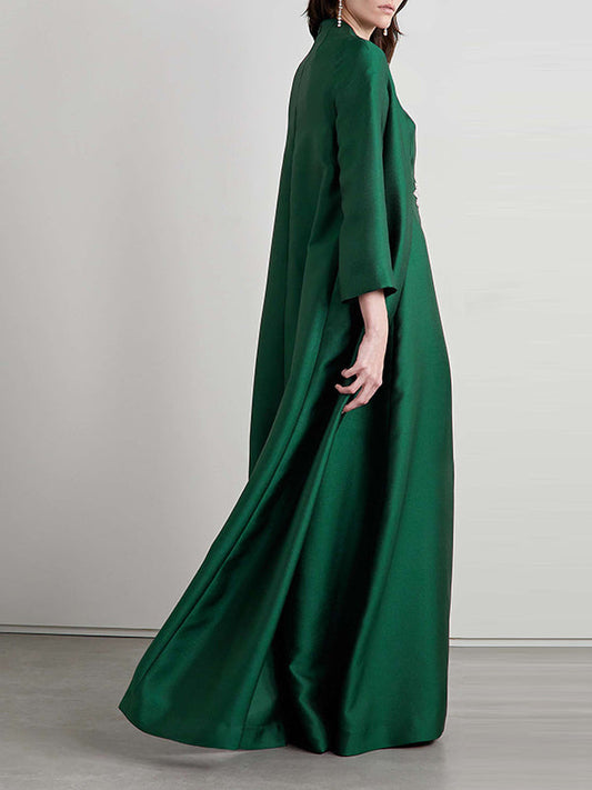 Vestidos de noche sueltos de manga larga con bordados en color liso