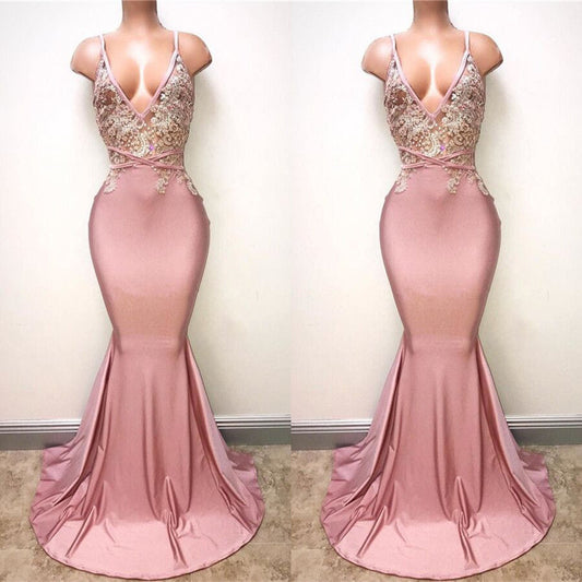 Vestidos de noche con tirantes finos de sirena sin mangas con apliques de encaje sexy