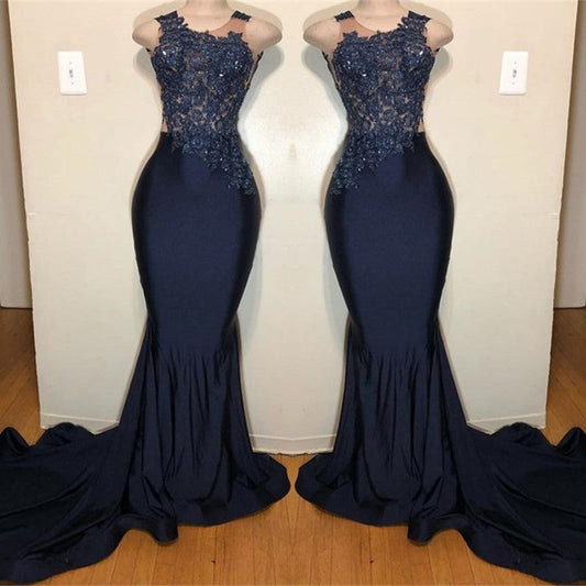 Vestido de fiesta de sirena sin mangas con espalda abierta y elegantes apliquesPrecio habitual $258.00 USDPrecio habitualPrecio unitario / por-