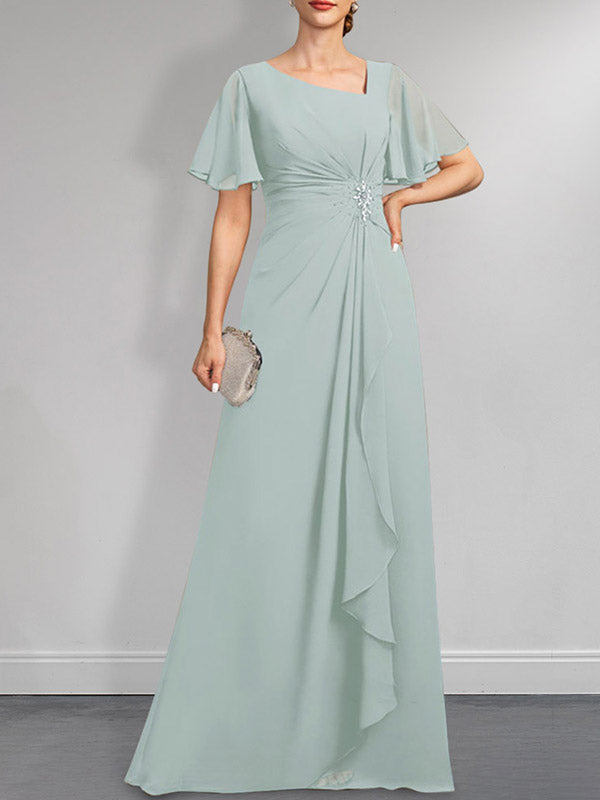 Vestido de gasa para madre de la novia, corte A, asimétrico, largo hasta el suelo, con lentejuelas y cuentas plisadas