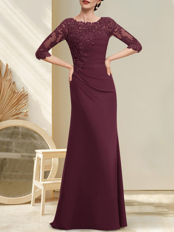 Vestido de gasa con encaje y escote redondo para madre de la novia, con lentejuelas plisadas y cuentas.