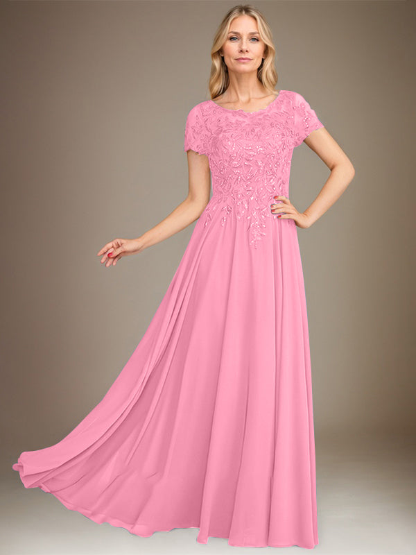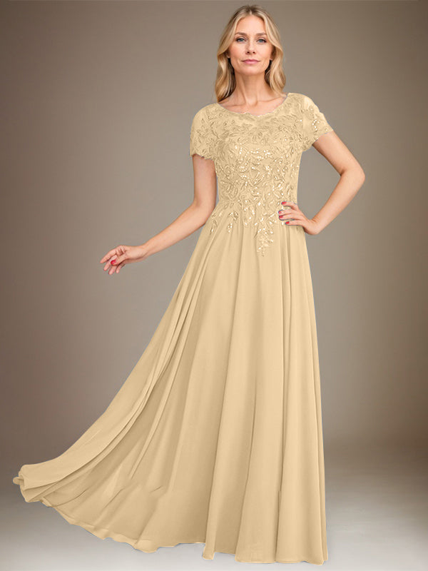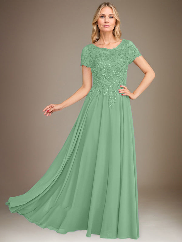 Vestido de gasa para madre de la novia, corte A, largo hasta el suelo, con apliques y lentejuelas