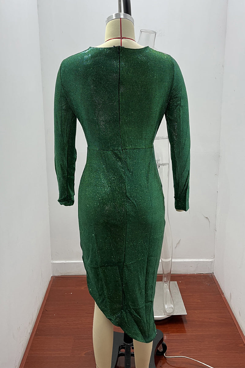 Vestido de noche elegante de moda con cuello en V y lentejuelas de patchwork liso (5 colores)