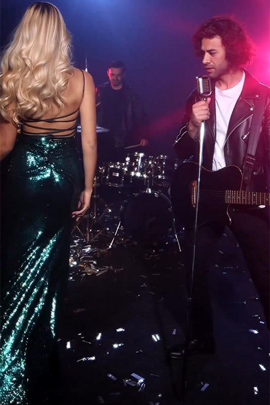 Este elegante y llamativo vestido de fiesta presenta una silueta larga verde oscuro con un solo hombro y detalles de lentejuelas. Una elegante abertura alta le da un toque de estilo para completar el look. Una opción perfecta para cualquier ocasión especial.