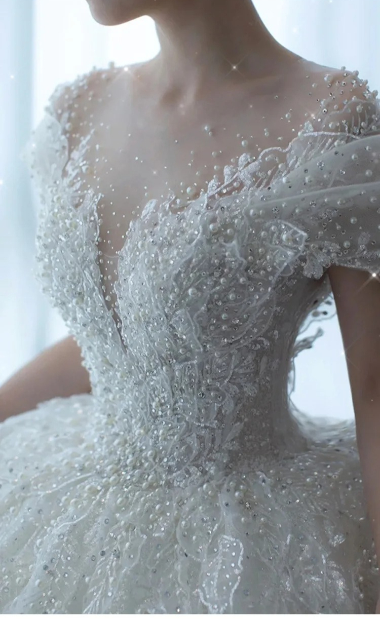 2025 Princess Sexy Luxury Crystal Beaded Wedding Dress Puff Tulle White Gown Bride Pregnant Women's High-end Gown with Trailing