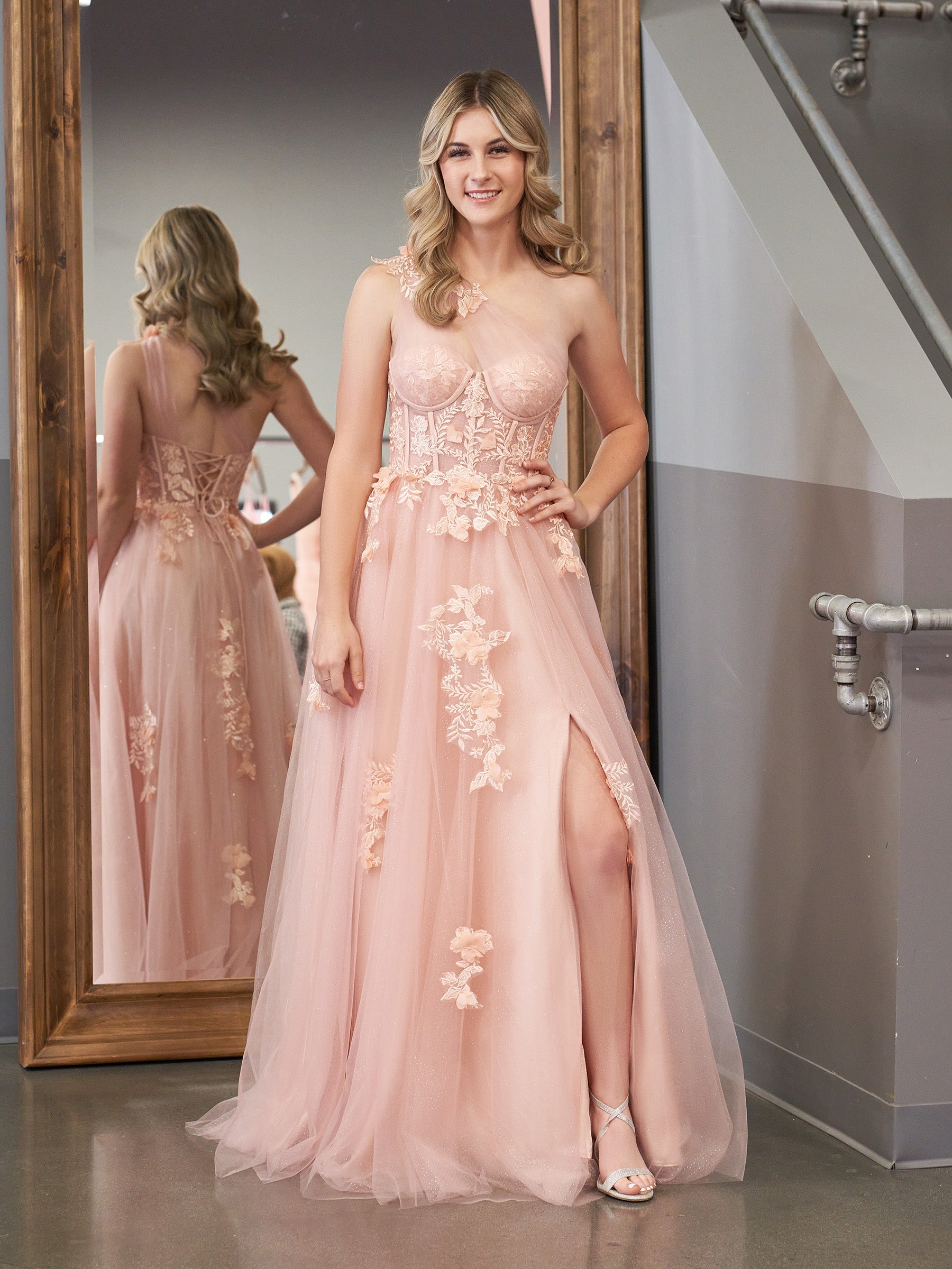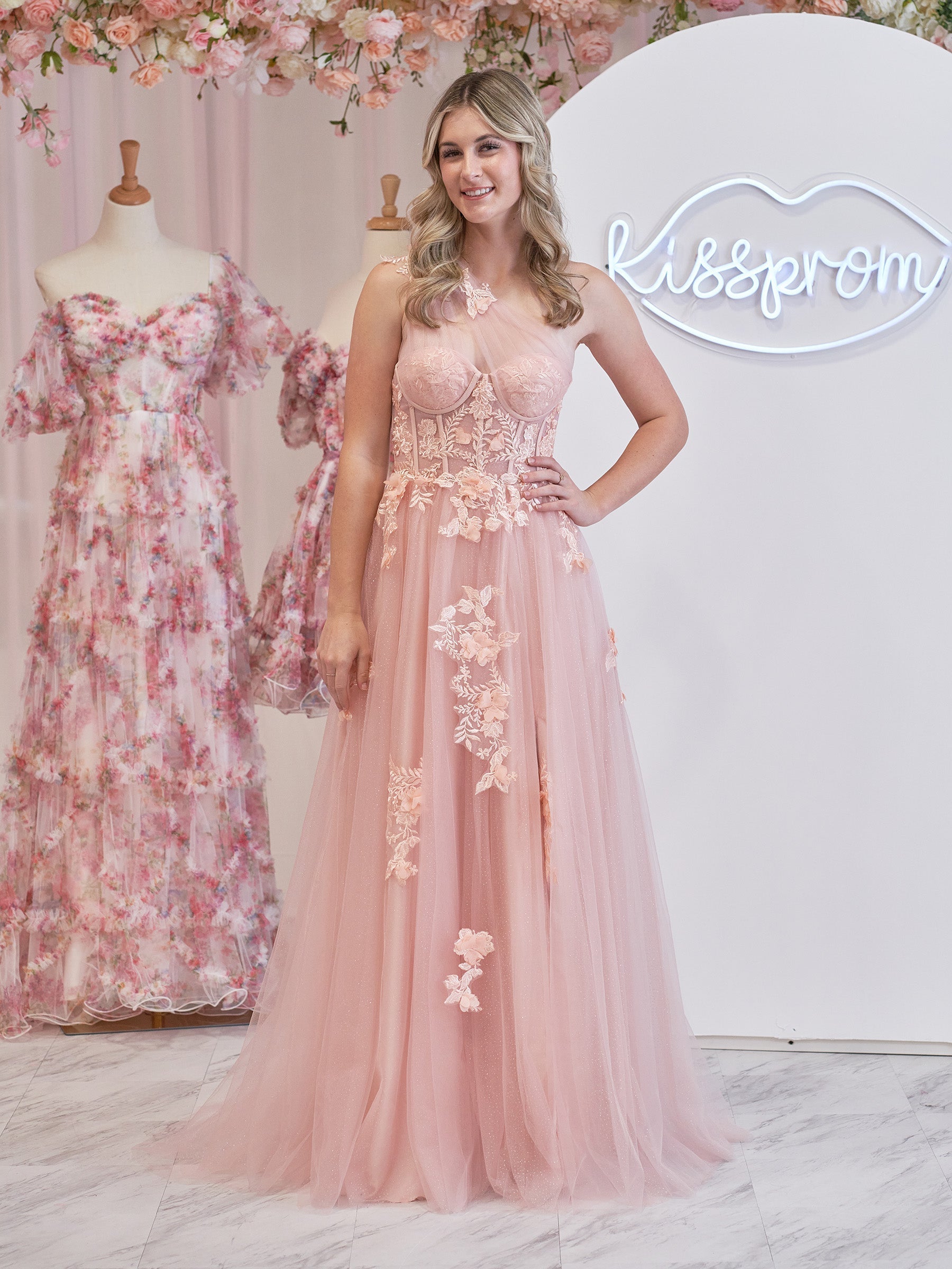 liExperience striking elegance in the Kissprom One Shoulder Long Prom Dress! This flirty yet sophisticated dress is perfect for making a statement on any special occasion. It features an elegant one-shoulder design and detailed black appliques for added drama and luxe appeal. The long. slim silhouette is designed to hug your curves gracefully. accentuating all the right places. Best of all. high front and back slits give you freedom of movement so you can dance the night away in comfort. Whether it's a prom or an evening wedding. the Kissprom One-Shoulder Long Prom Dress will have you turning heads!