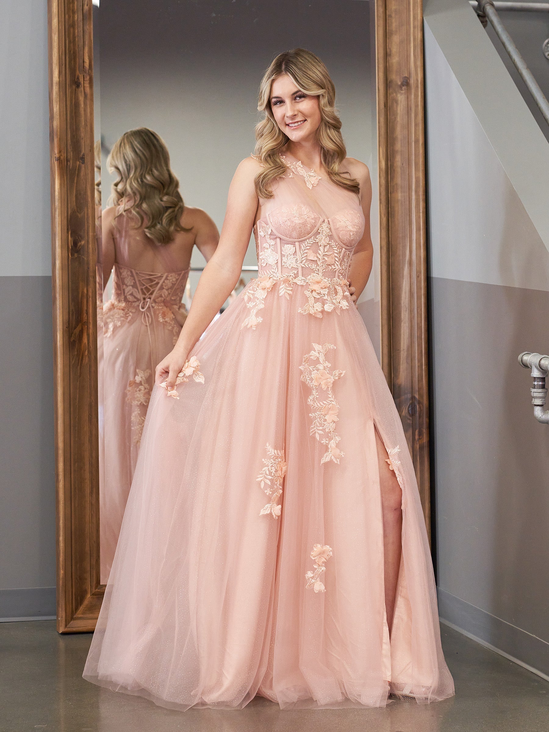 - Embellishment: High Slit. Lace Appliques. and 3D Flowers