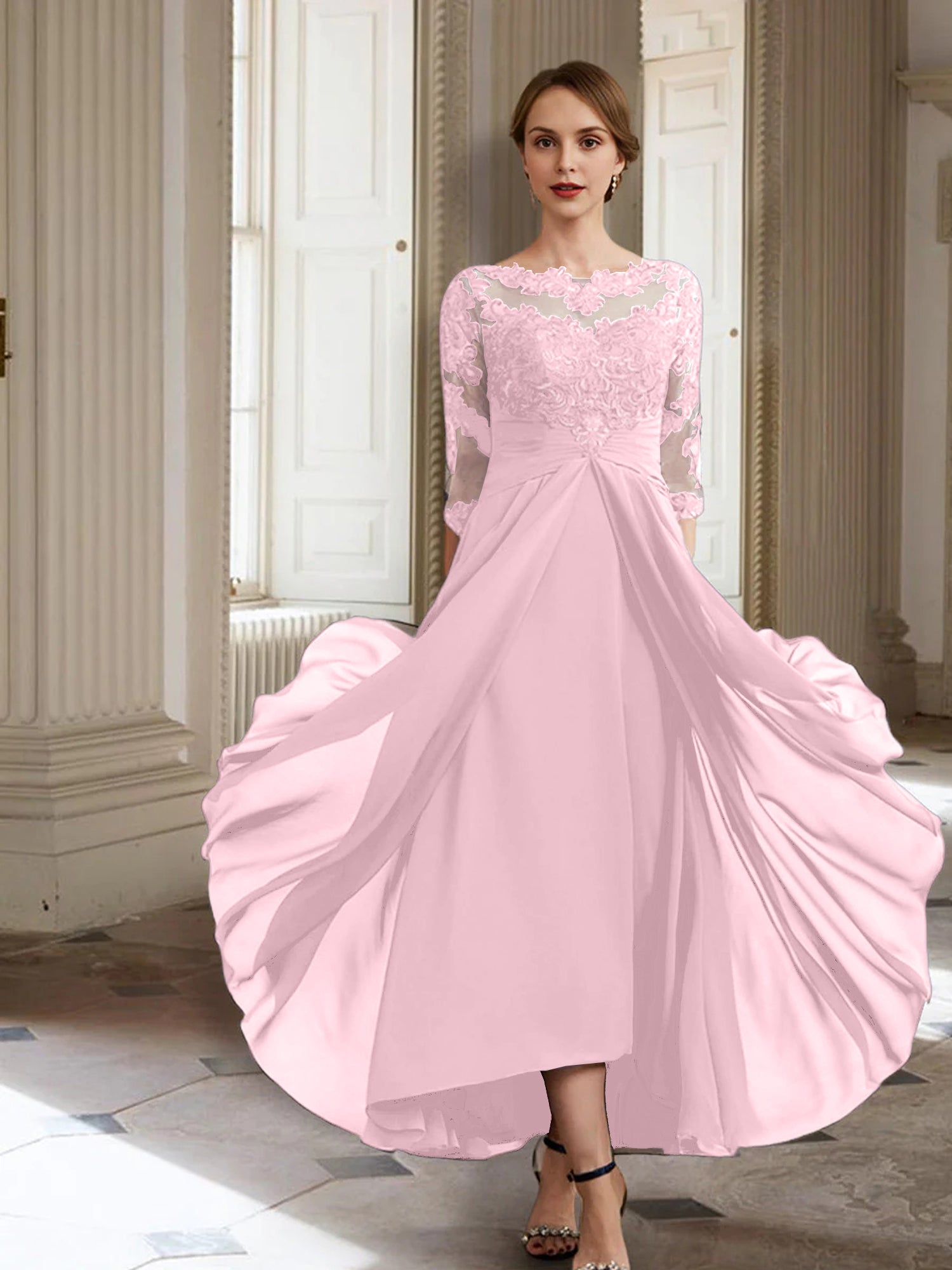 Hemline/Train: | Ankle-Length. High Low |