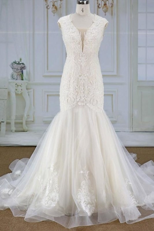 Awesome Appliques Tulle Mermaid Elegant Wedding Dresses