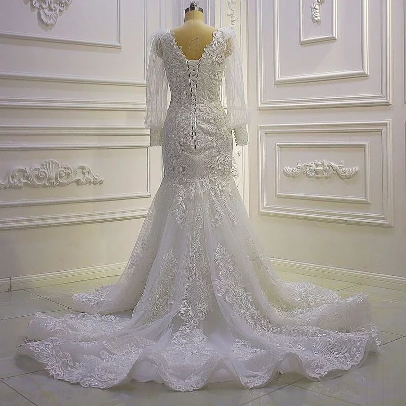 Beautiful Mermaid Long Sleeves Lace Appliques Wedding Dress With Train