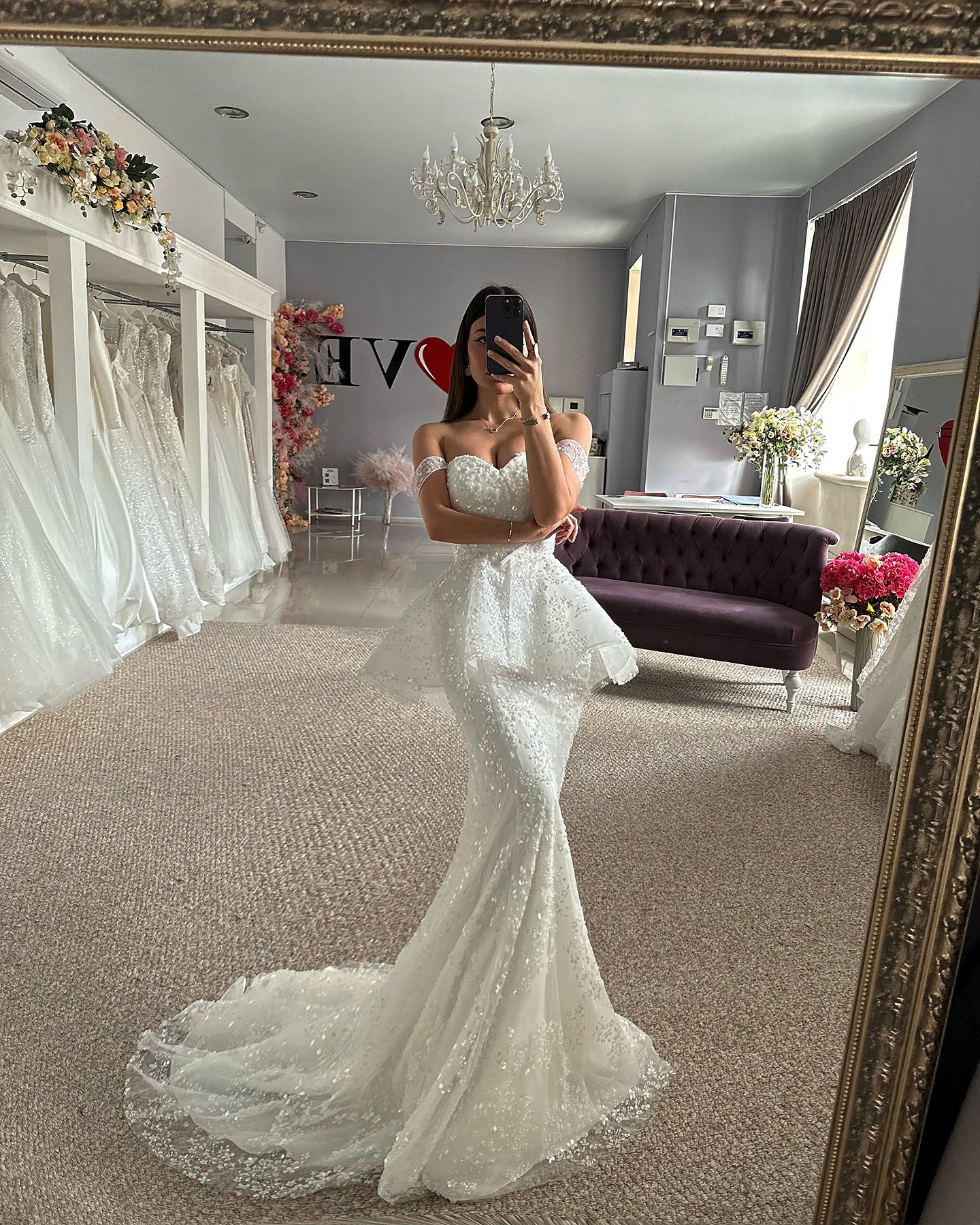 Exude elegance and romance on your special day with our Beautiful Mermaid Tulle Lace Sweetheart Sleeveless White Wedding Dresses. Featuring intricate appliques and a flattering sweetheart neckline. this dress will make you feel like a true mermaid princess. The flowing tulle and lace details add a touch of enchantment to this timeless design.
