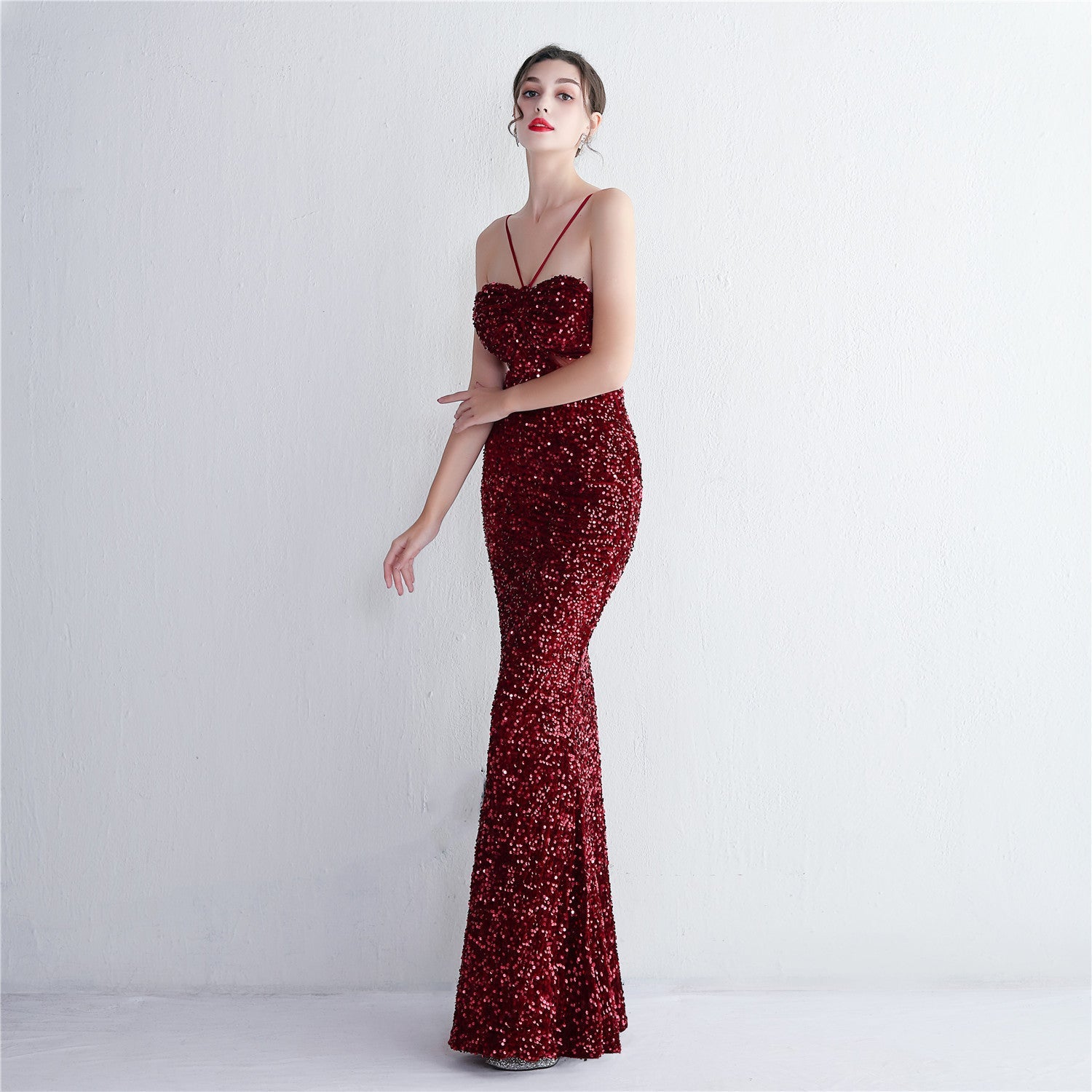 Bottom Sequin Suspender Party Sequined Dress Long Banquet Slim Fit Evening Dress Elegant