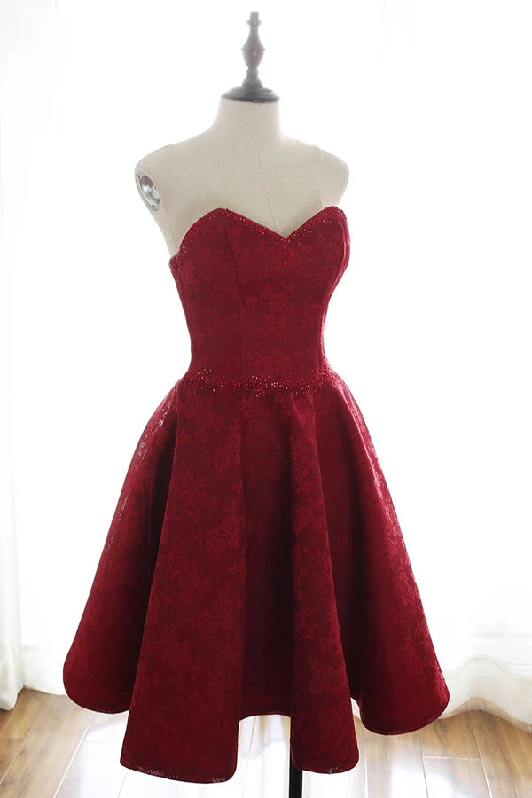 Burgundy Sweetheart Lace Short Prom Dresses Homecoming Dresses