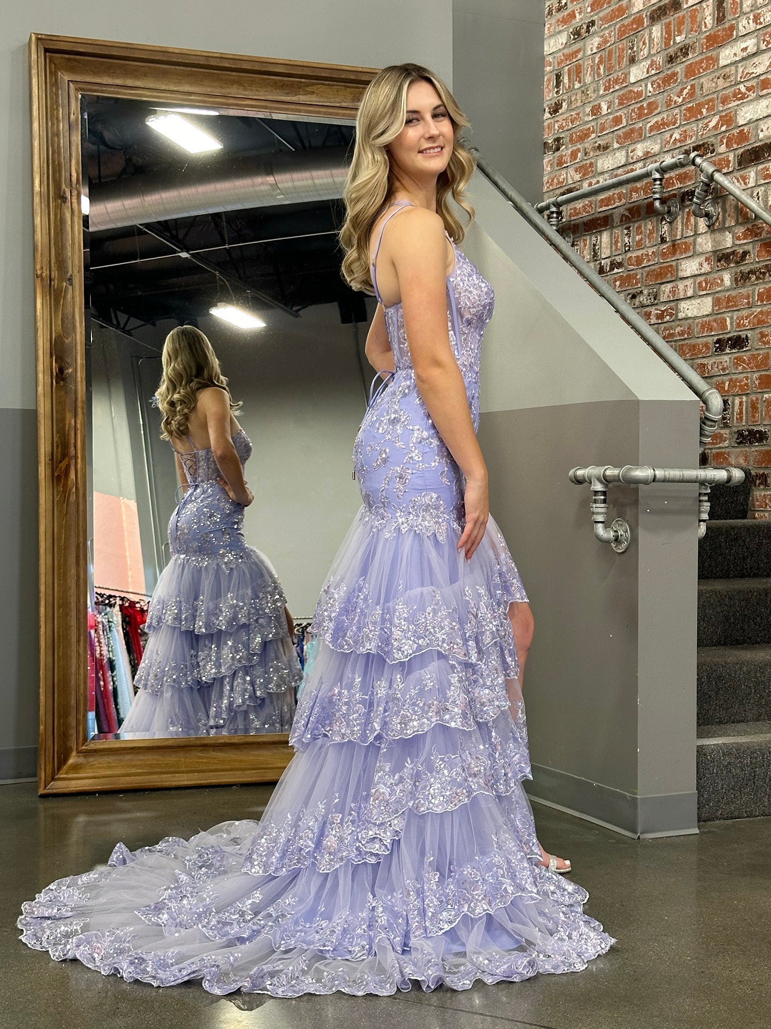 Roycebridal Andrea |Sheath One Shoulder Tiered Lace Long Prom Dress