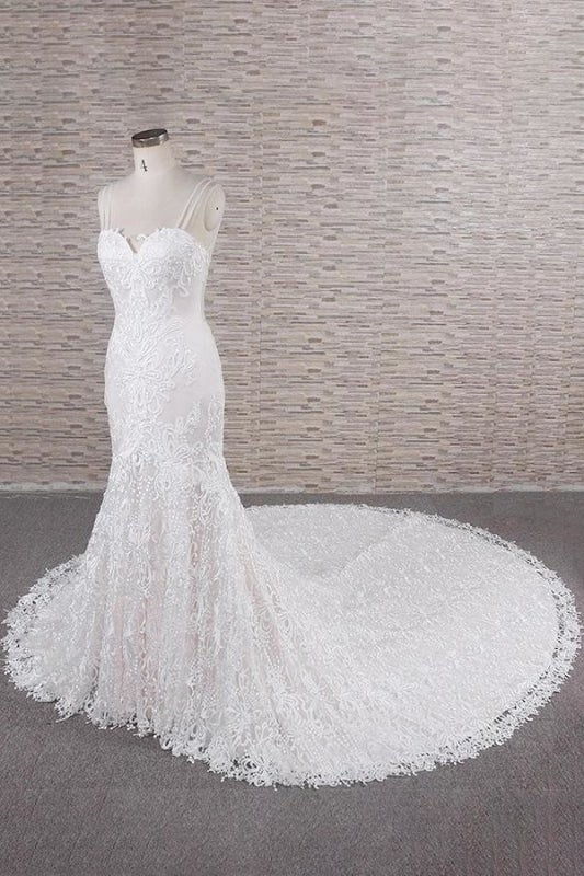 Chic Spaghetti Strap Appliques Mermaid Elegant Wedding Dresses