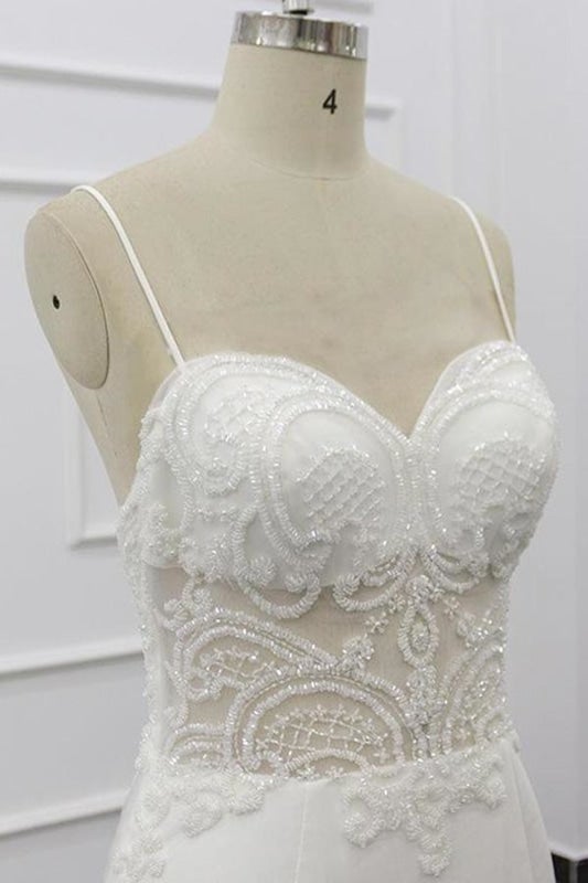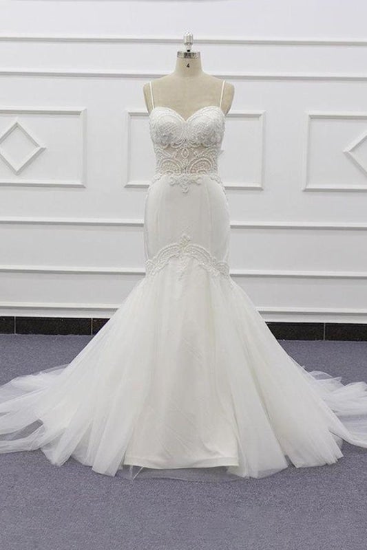 Chic Spaghetti Strap Beading Mermaid Elegant Wedding Dresses
