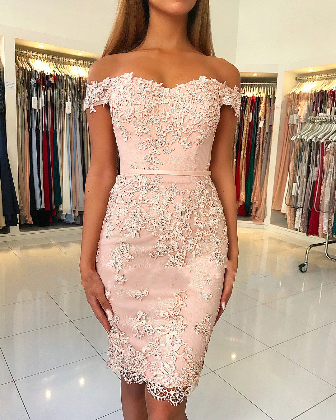 Classy Short Mermaid Off-the-shoulder Lace Prom Dress