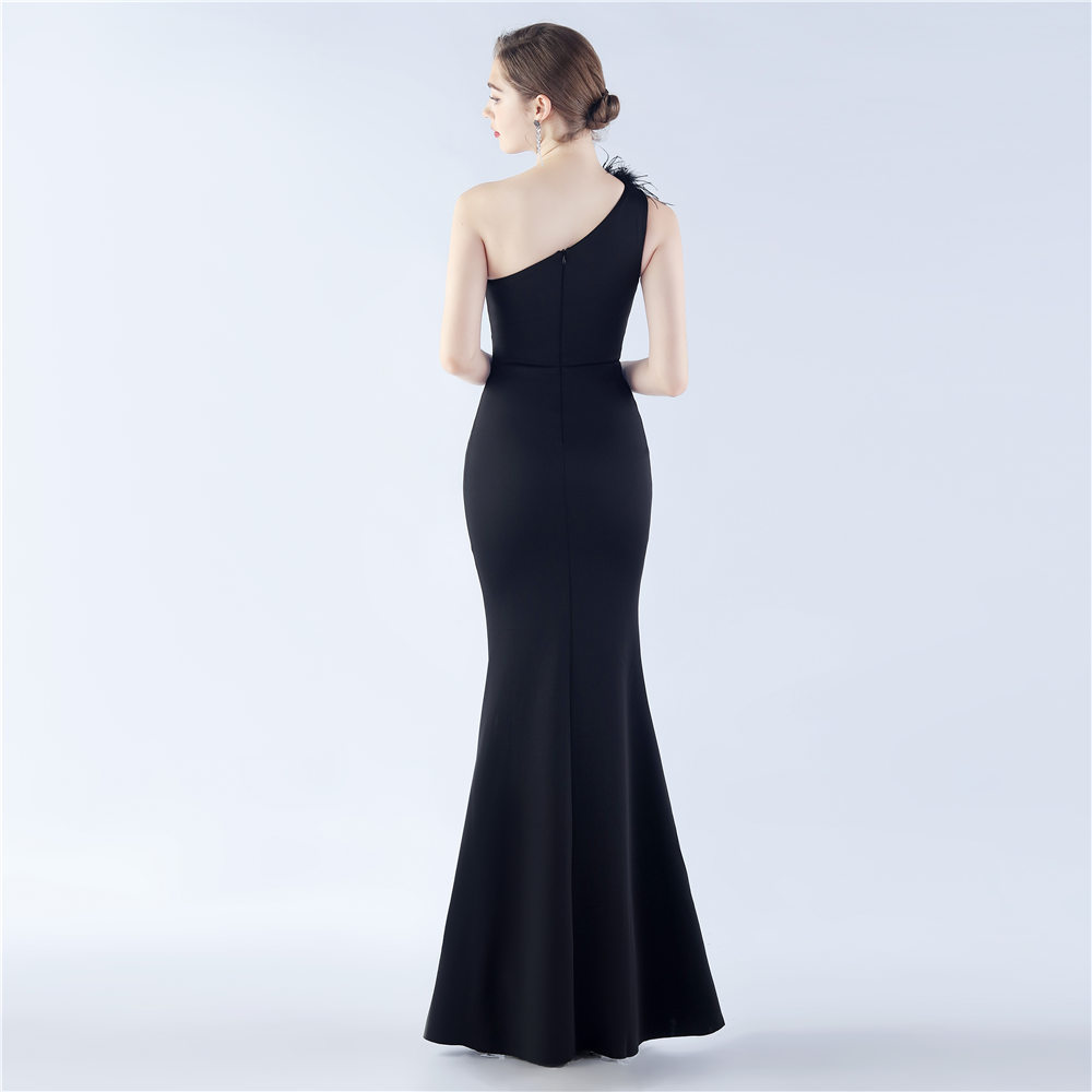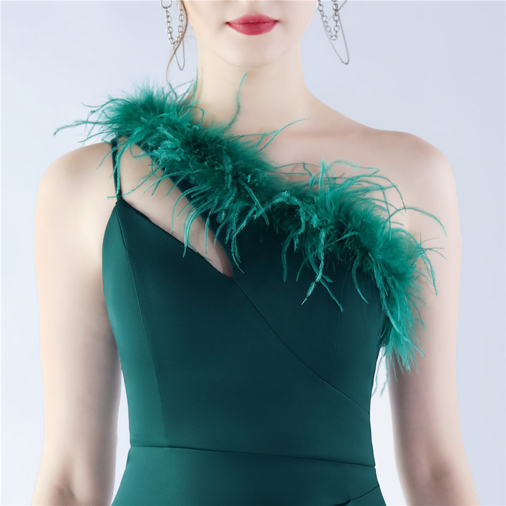 Craft Order Ostrich Feather Cocktail Performance Satin Long Evening Dress