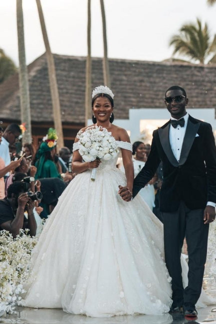 Designer Princess Off-the-shoulder A-line Wedding Dresses With Lace
