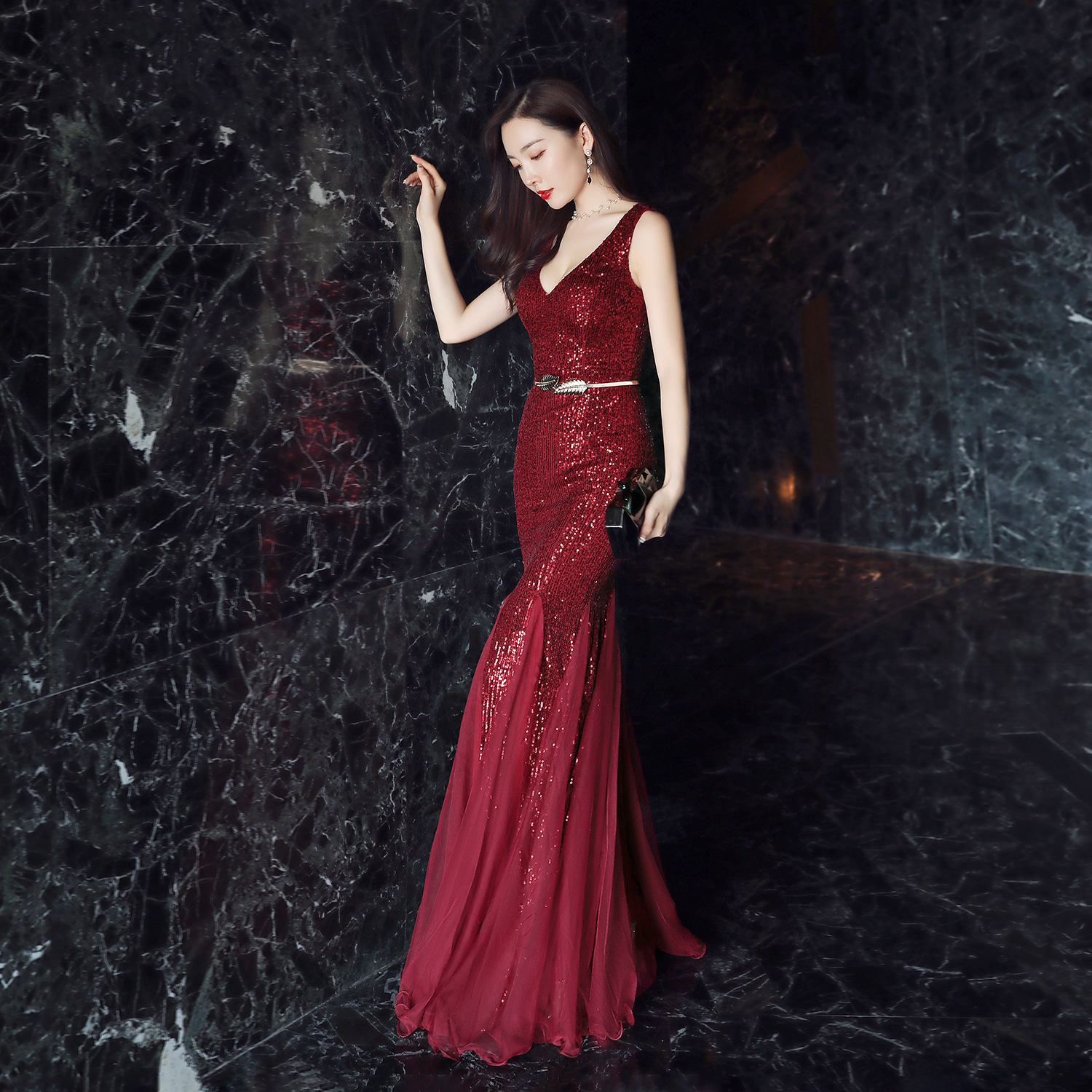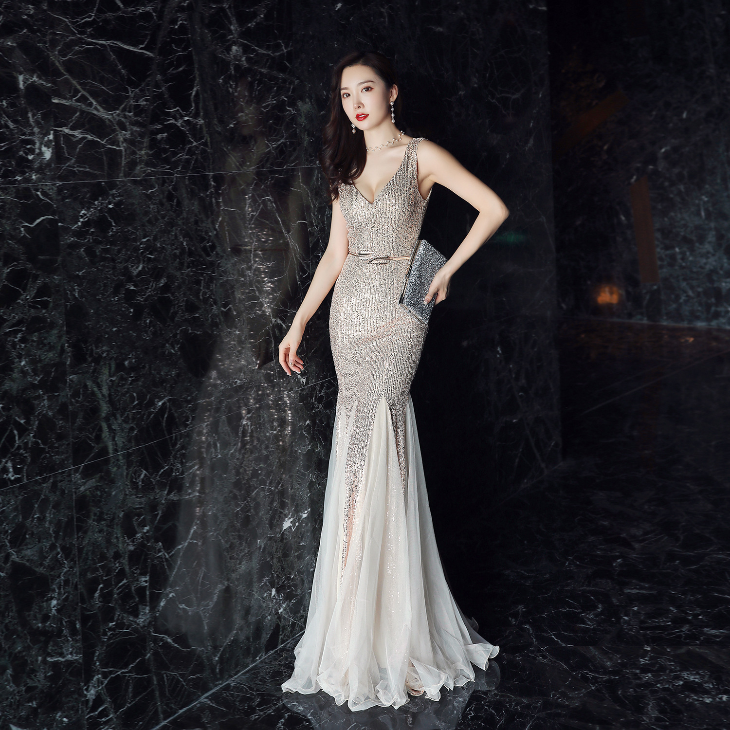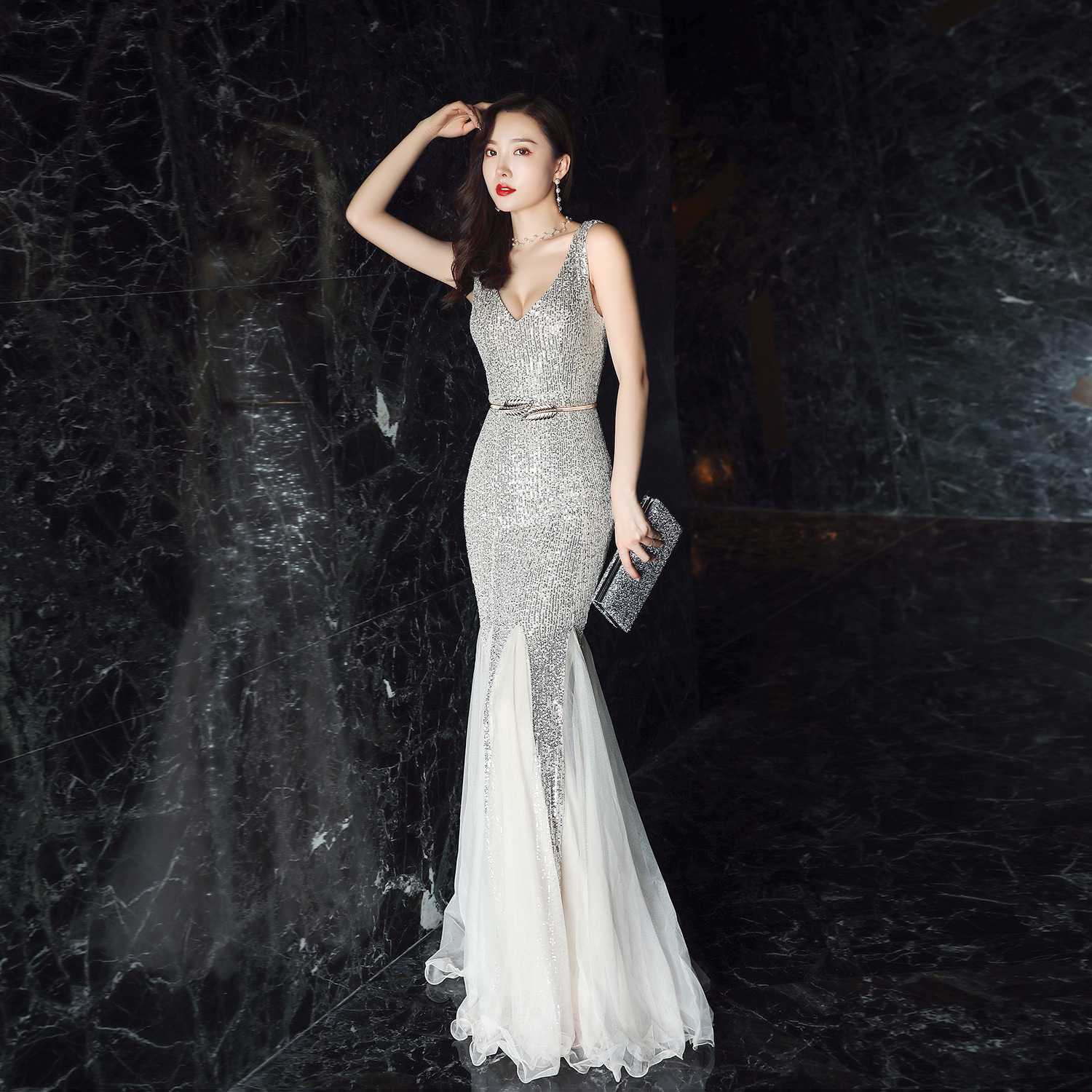 Evening Dress Women Cocktail Elegant Annual Meeting Long Fishtail Sexy Dress