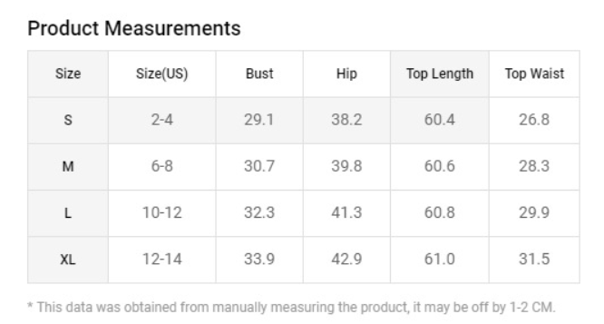 | US Size | UK Size | EU Size | Bust | Waist | Hips |
