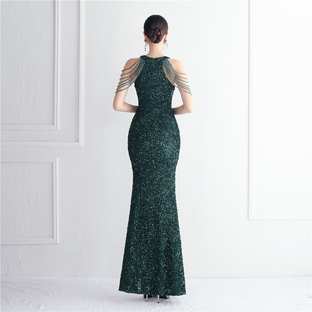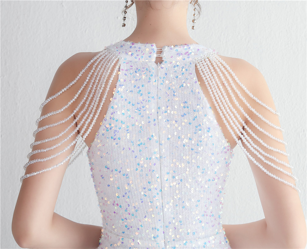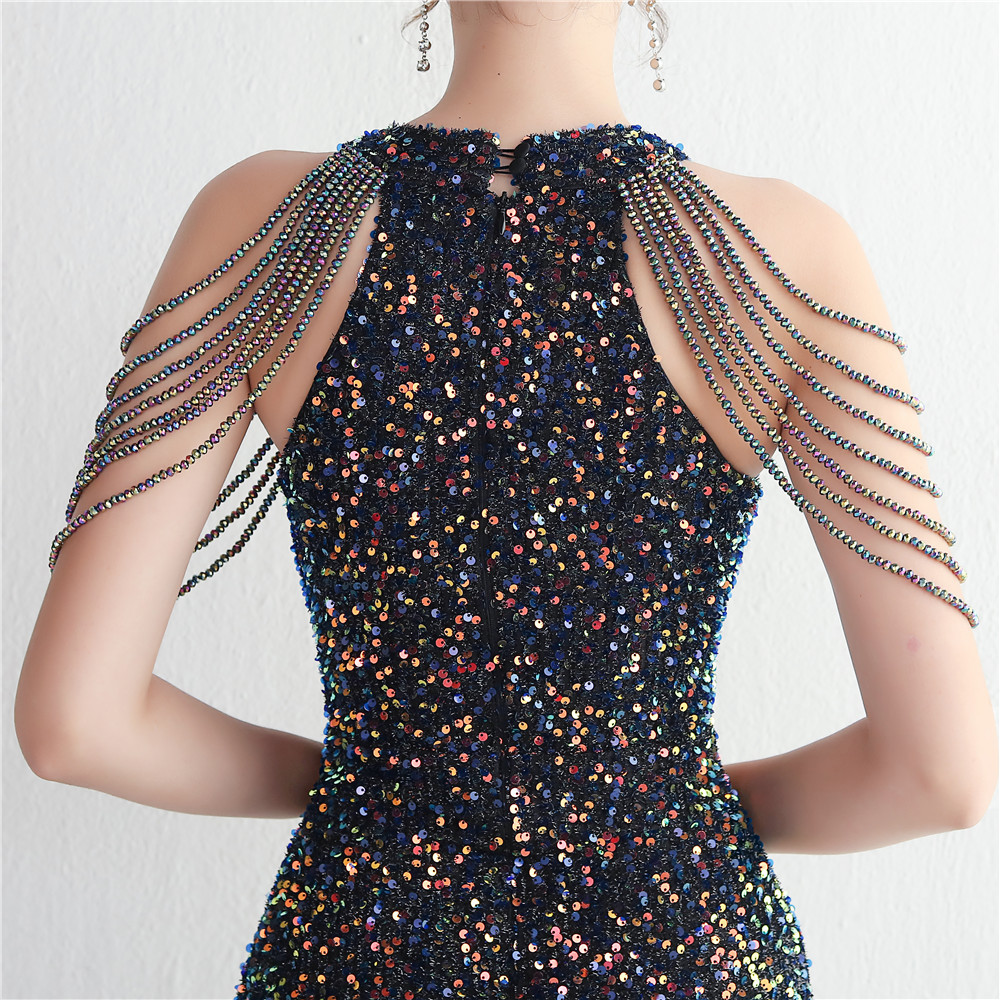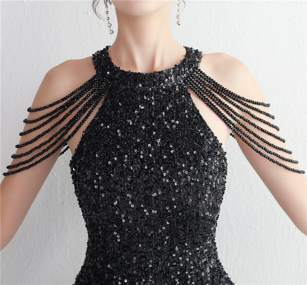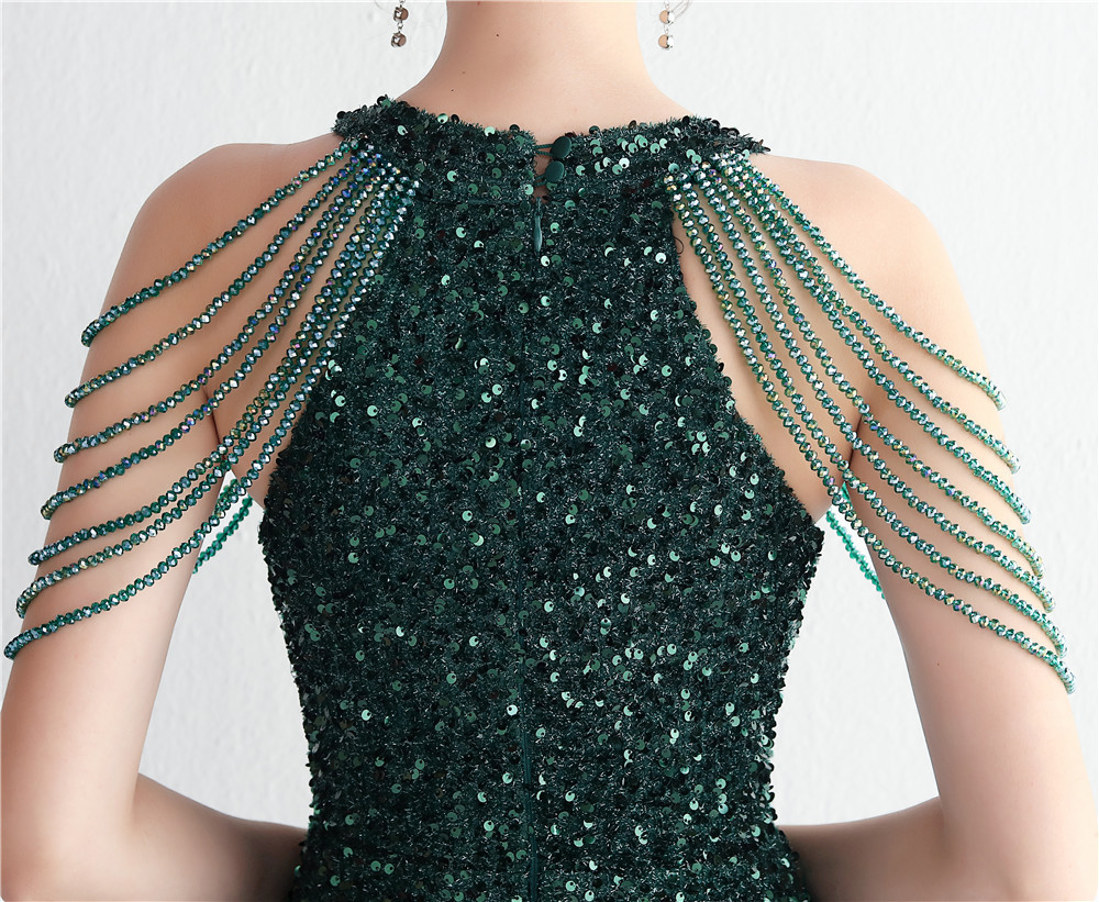 Heavy Industry Micro Glass Bead Craft Beaded Cocktail Evening Dress Elegant Long Halter Split Sequ