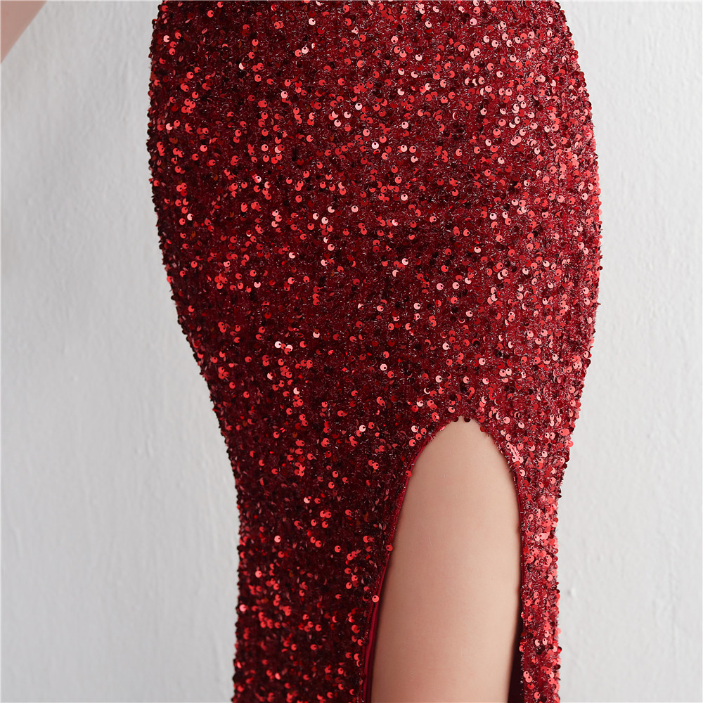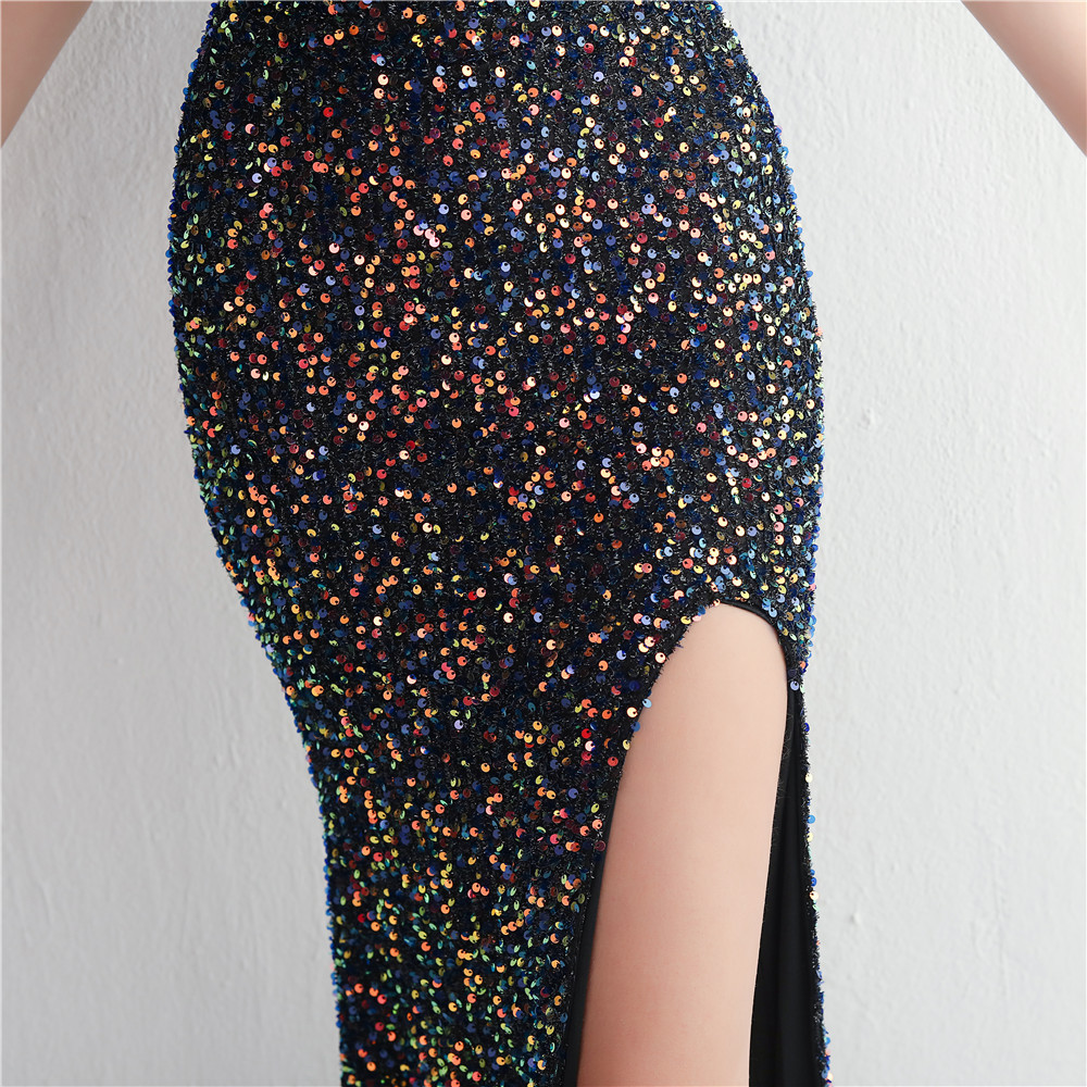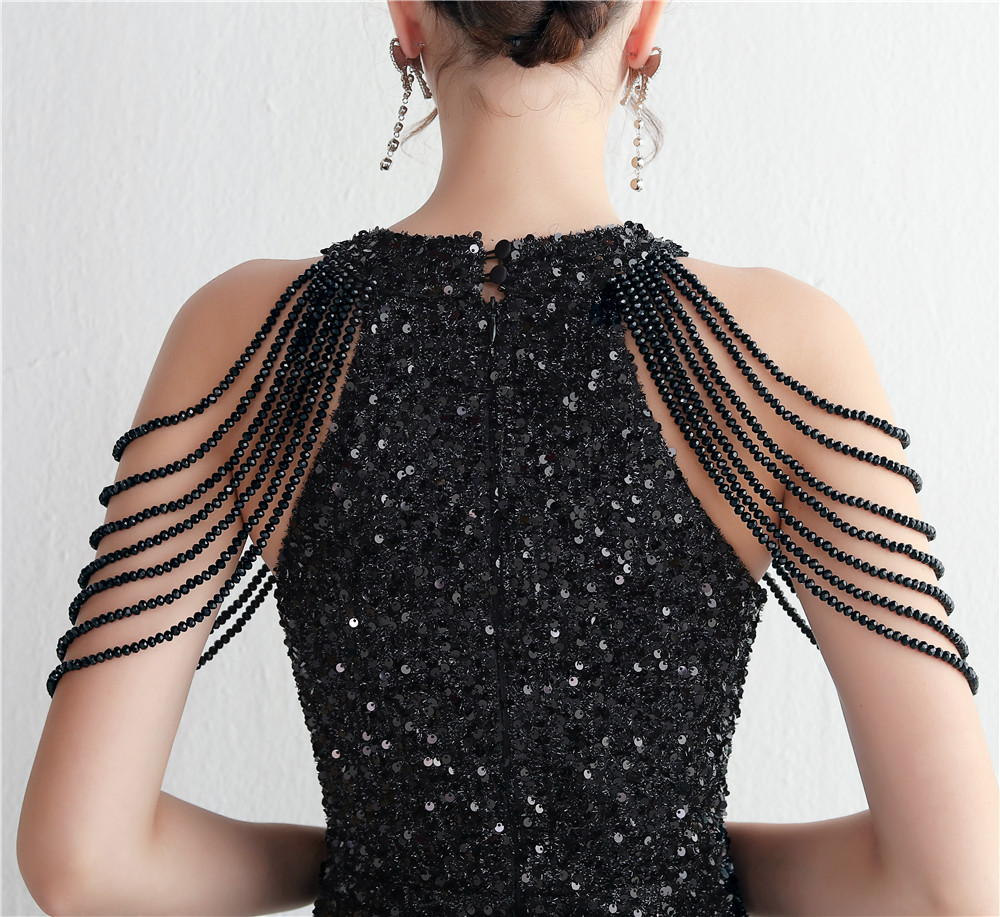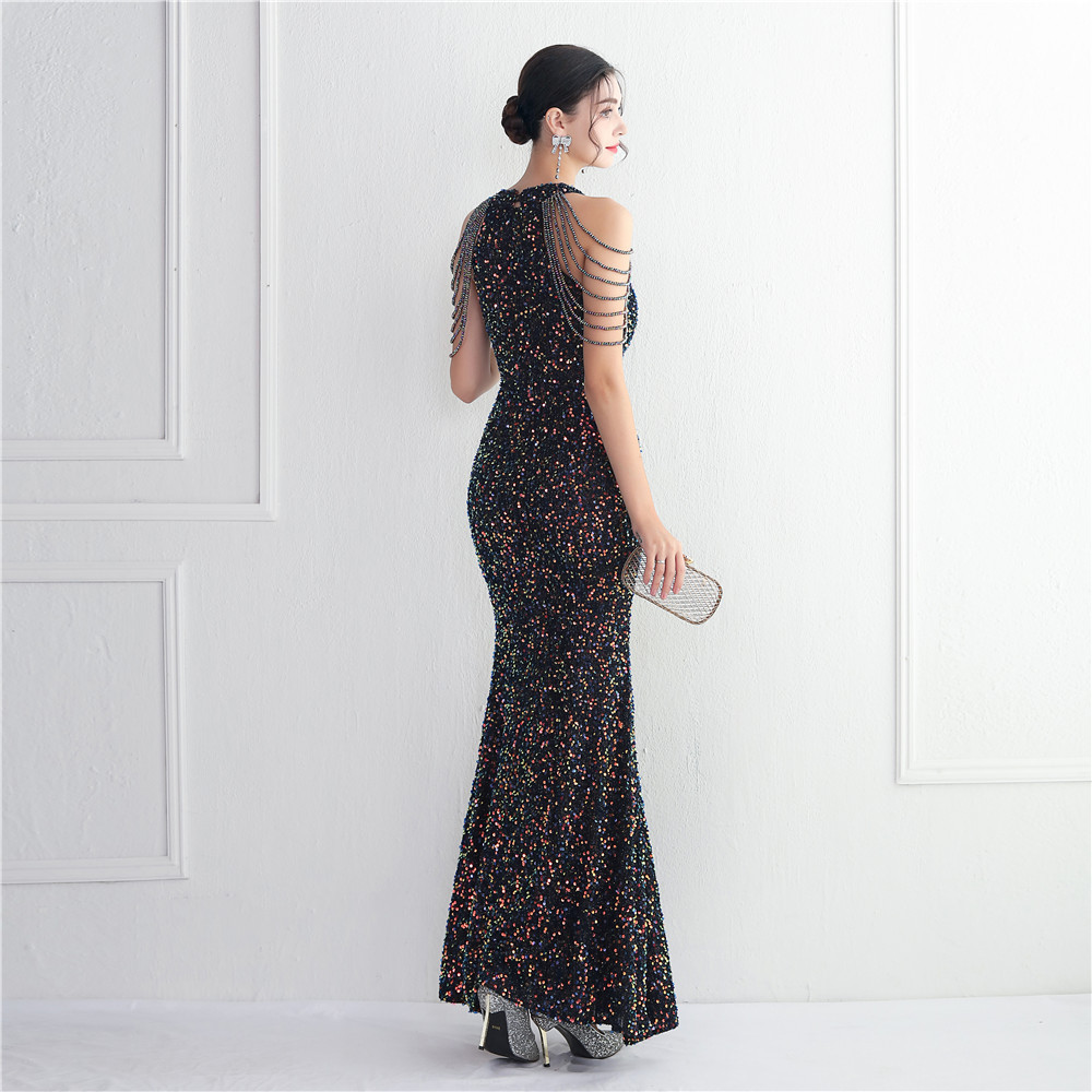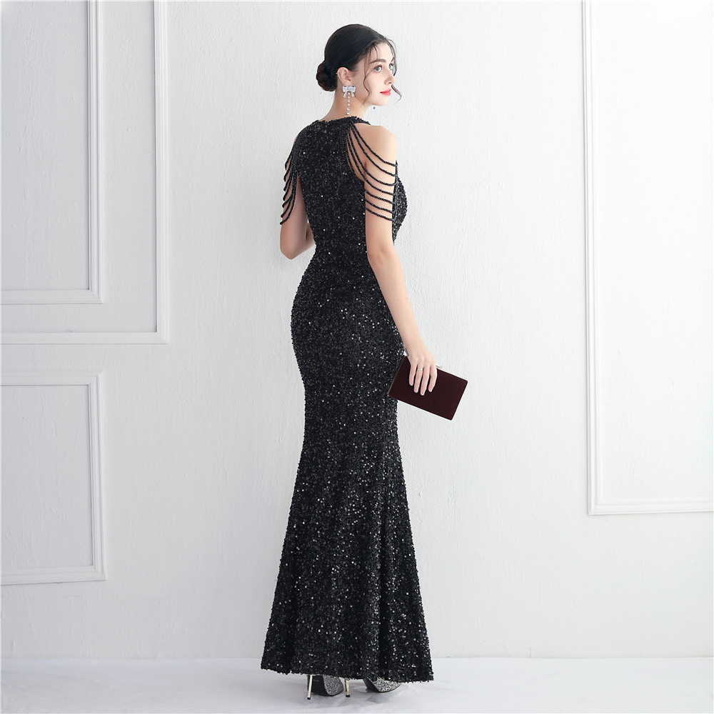 Heavy Industry Micro Glass Bead Craft Beaded Cocktail Evening Dress Elegant Long Halter Split Sequ