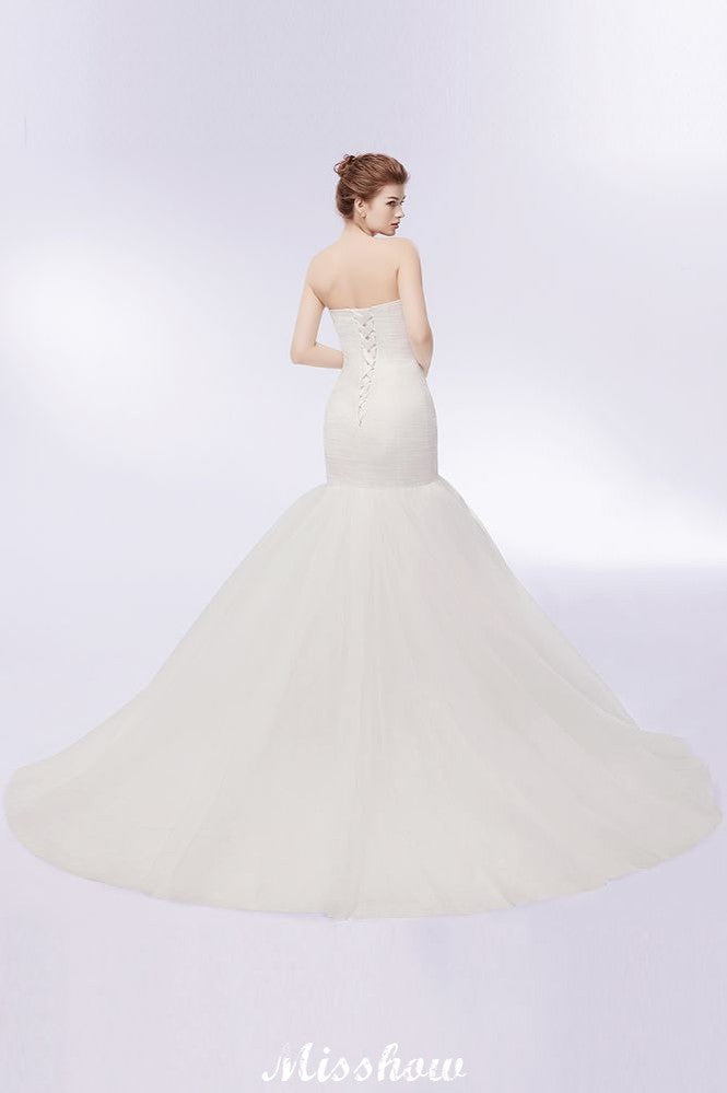 Ivory Tulle Sweetheart Mermaid Strapless Wedding Dresses with Lace-up