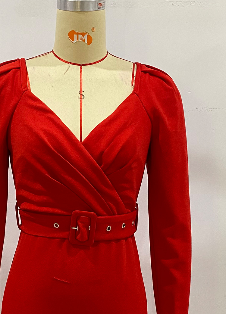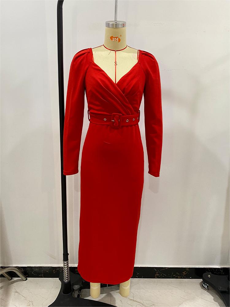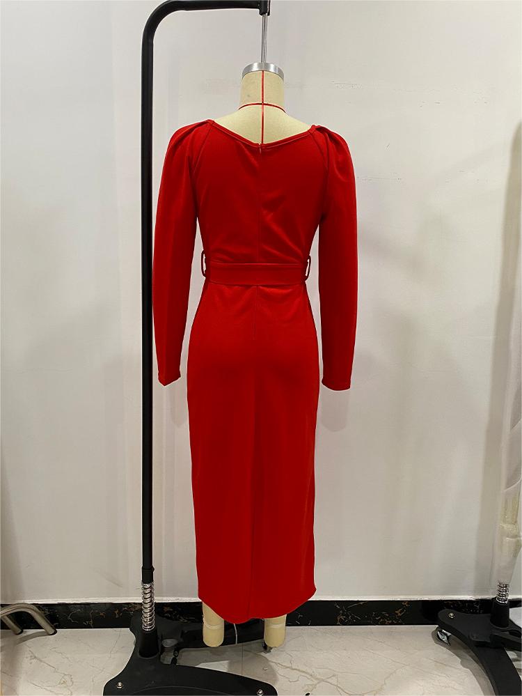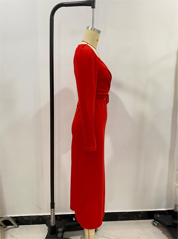 Elegant V Neck Waist Split Long Sleeve Evening Dress for Women