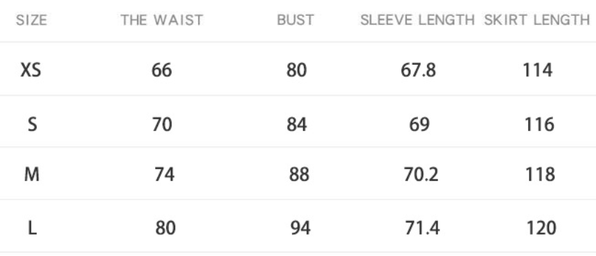 | Ankle Length | 52 | 132 | 53 | 135 | 53 | 135 | 54 | 137 | 54 | 137 | 54 | 137 | 54 | 137 | 55 | 140 | 55 | 140 | 56 | 142 | 56 | 142 | 56 | 142 | 56 | 142 | 56 | 142 | 56 | 142 | 56 | 142 |