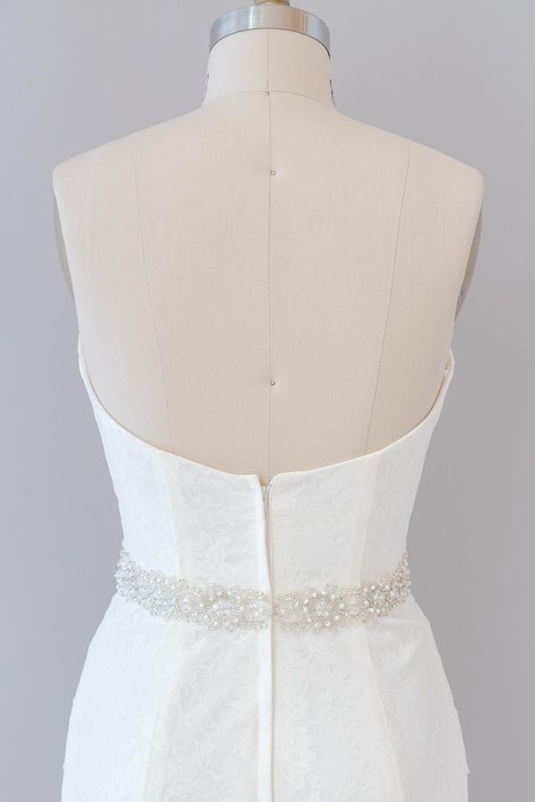Long Mermaid Strapless Tulle Lace Wedding Dress