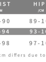 | Hips | 35 ½ | 89 | 36 ½ | 92 | 37 ½ | 94 | 38 ½ | 97 | 39 ½ | 100 | 41 | 104 | 42 ½ | 107 | 44 ½ | 112 | 46 ¾ | 118 | 49 | 124 | 51 ¼ | 130 | 53 ½ | 135 | 56 ½ | 143 | 59 ½ | 150 | 62 ½ | 158 | 66 ½ | 168 |