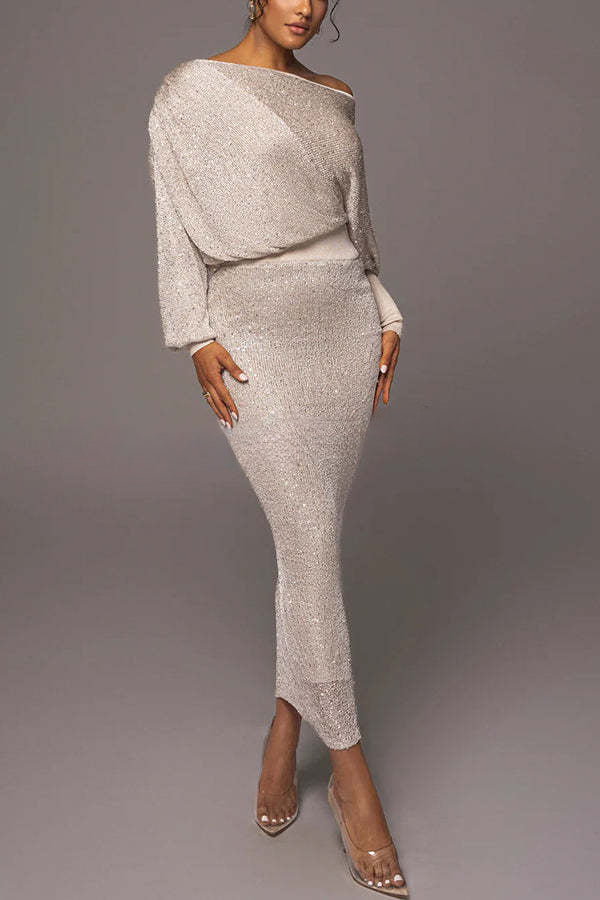 Night Sky Sequin Wide Collar Elastic Waist Maxi Dress