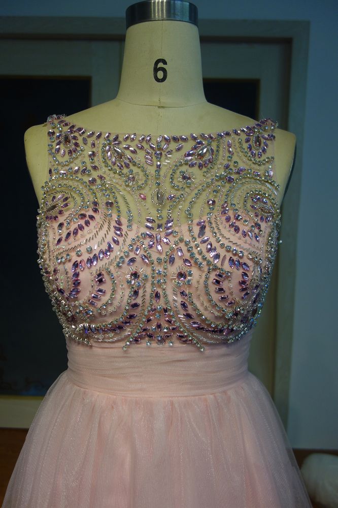 Pink Crystal Beading A-line Short Scoop SleevelessProm Dresses