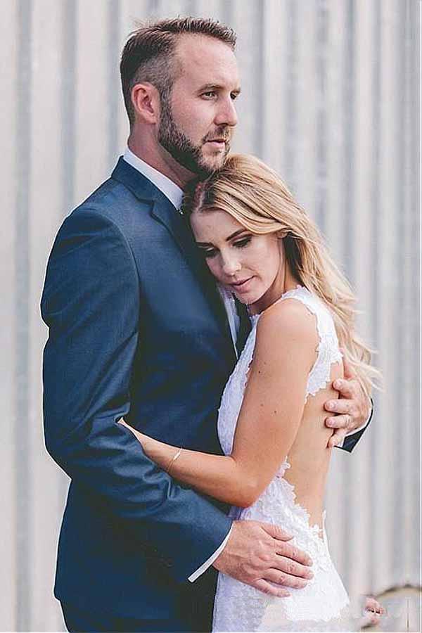 Romantic Sexy Front Split Open Back Sleeveless Lace Wedding Dresses with Train