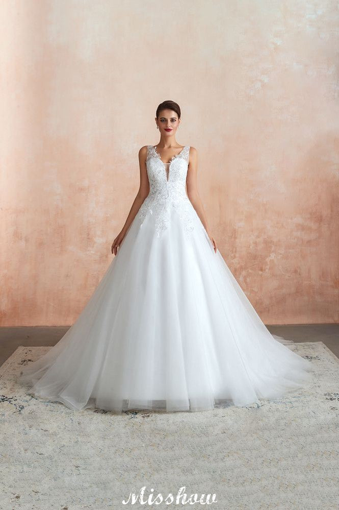 Sexy Pluging V-Neck Wedding Dress Sheer Lace Aline Bridal Gown