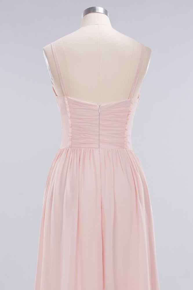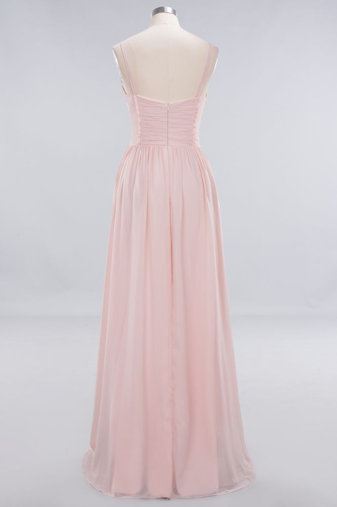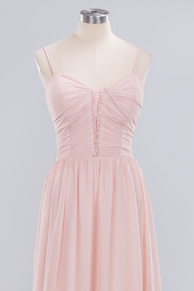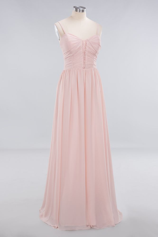 Sheer Spaghetti Straps aline Prom Dresses | Simple Chiffon Sleeveless Evening Dresses