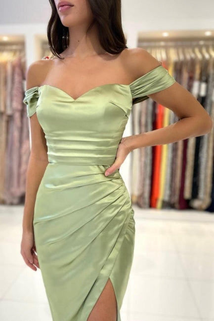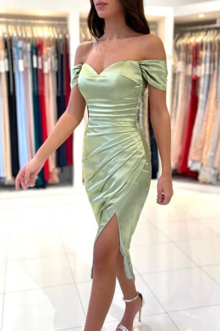 Simple Off-the-shoulder Evening Dresses Short Sage Prom Dresses With Slit