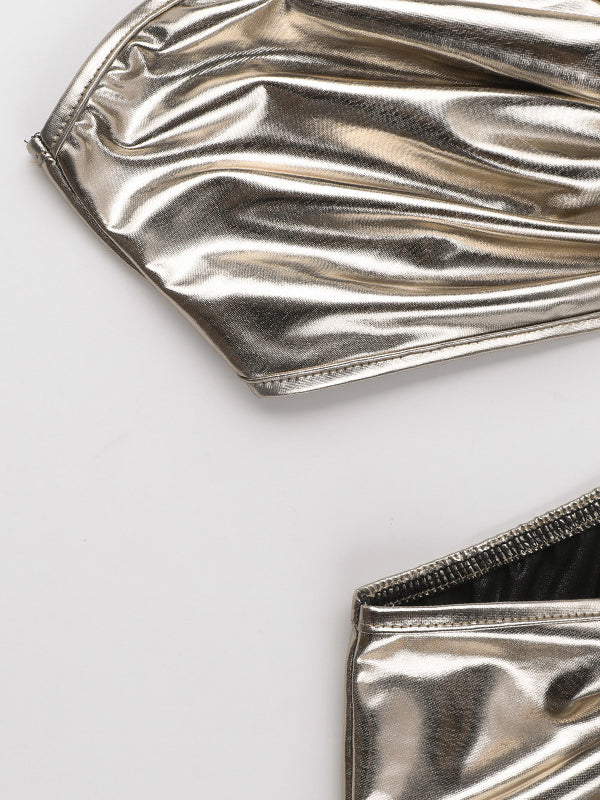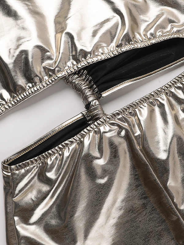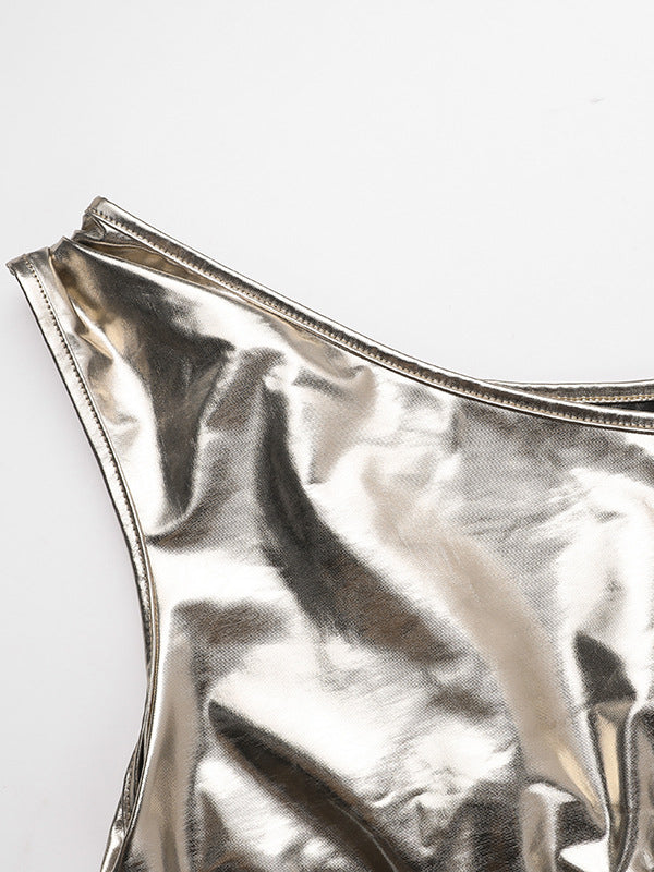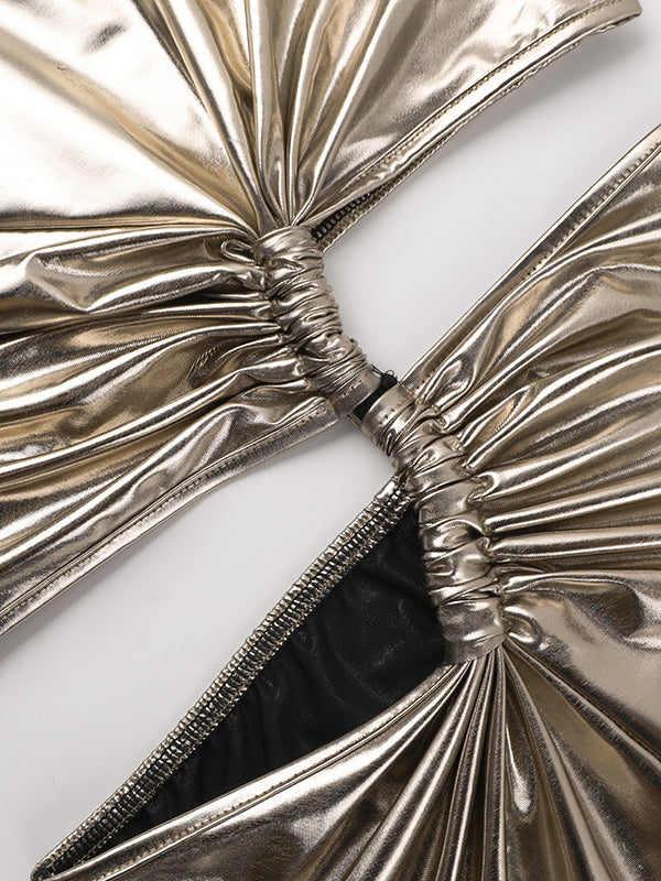 Skinny Sleeveless Asymmetric Pleated Shiny Split-Back Split-Joint One-Shoulder Evening Dresses Maxi Dresses