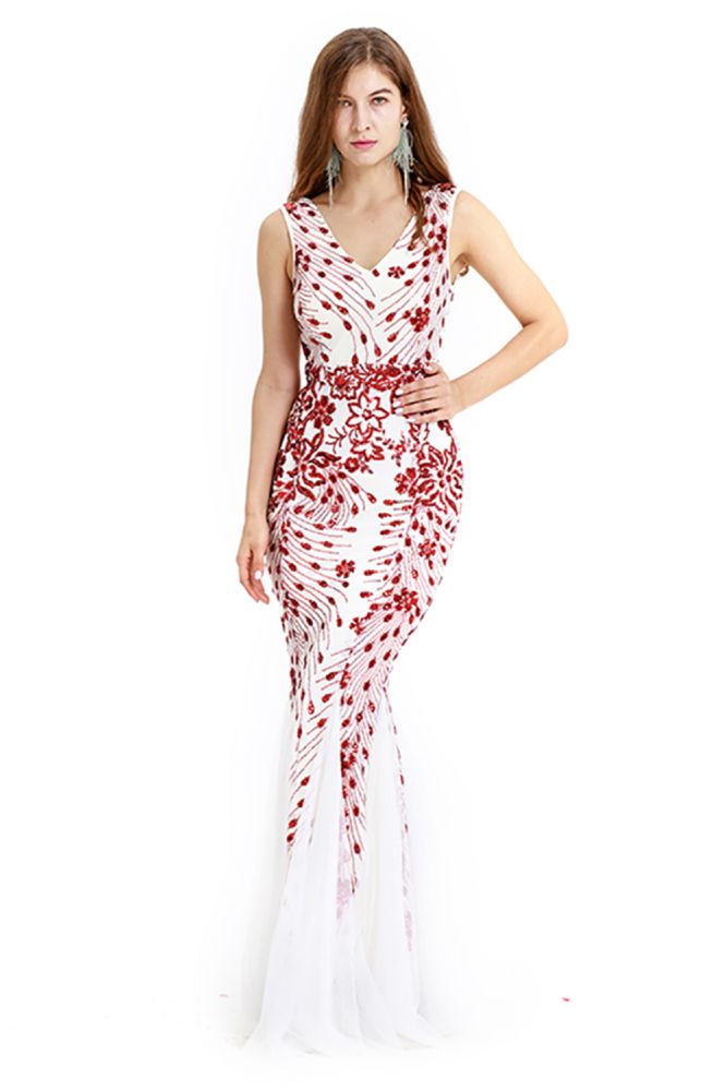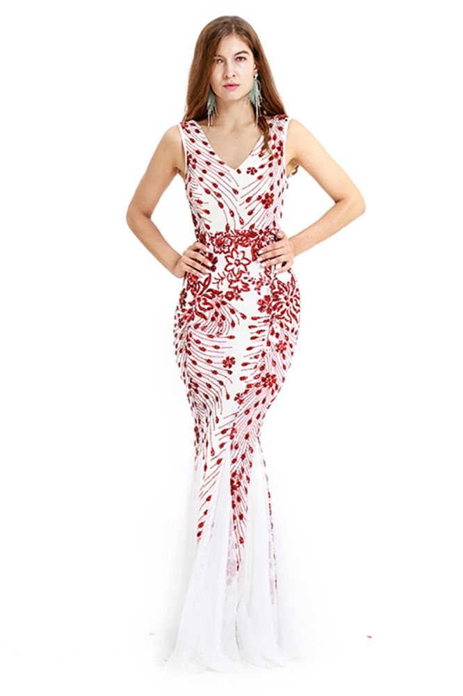 Vintage Beadings Mermaid Evening Gowns V-Neck Floor Length Prom Dress